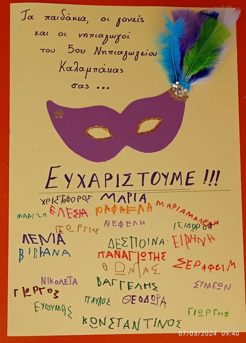 Ευχαριστήριο του 5ου Νηπιαγωγείου Καλαμπάκας