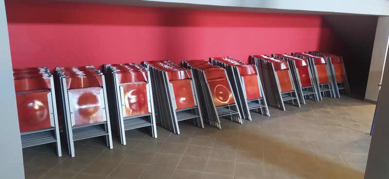 Α. Τον Λευτέρη Αβραμόπουλο, καθώς με δικές του προσωπικές ενέργειες, παραλάβαμε χθες Τετάρτη 19 Οκτωβρίου από την εταιρεία ΚΤΙΡΙΑΚΕΣ ΥΠΟΔΟΜΕΣ ΑΕ (κατασκευαστικός φορέας του Ελληνικού κράτους που υποστηρίζει και συντηρεί τις δημόσιες κτιριακές υποδομές), 250 πτυσσόμενες πανέμορφες καρέκλες που θα κοσμούν πλέον την αίθουσα πολλαπλών χρήσεων του Λυκείου μας και φυσικά θα χρησιμοποιούνται σ’ αυτήν σε κάθε εκδήλωση που θα φιλοξενεί.