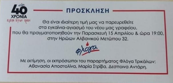 Ευχαριστήριο του Συλλόγου “Η ΦΛΟΓΑ” – Πρόκληση εγκαινίων των νέων γραφείων