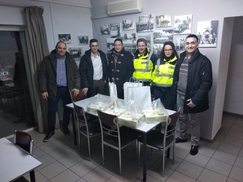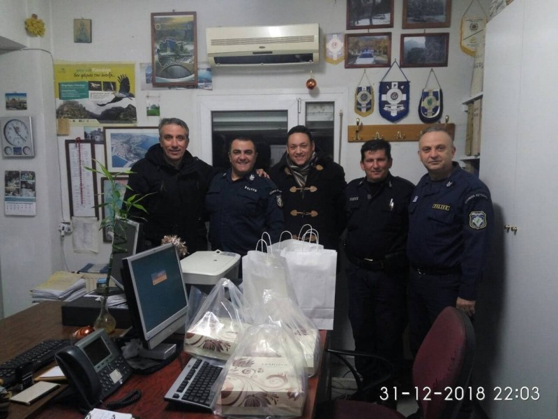 Για 3η συνεχή χρονιά την 31-12-2018 και περί ώρα 22:30΄, τα μέλη του Δ.Σ. της Διεθνούς Ενώσεως Αστυνομικών της Τοπικής Διοίκησης Τρικάλων (Ι.Ρ.Α.), επισκέφθηκαν συνοδευόμενα από τον κ. Δ/ντη της Δ/νσης Αστυν. Τρικάλων Α/Δ΄Γεώργιο ΣΠΗΛΙΟΠΟΥΛΟ τον οποίο και επισκέφθηκαν για ευχές στο Γραφείο του, σχεδόν όλες τις Υπηρεσίες και Ομάδες της Δ.Α. Τρικάλων και αντάλλαξαν ευχές με όλους του συναδέλφους, που η αλλαγή του χρόνου τους βρήκε στο καθήκον, μακριά από τις οικογένειες και τα αγαπημένα τους πρόσωπα.