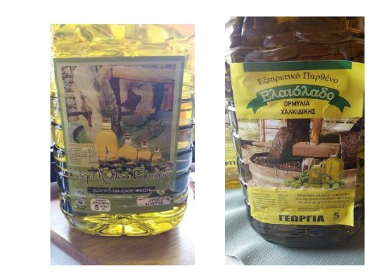 820 λίτρων ηλιέλαιου μεγάλος αριθμός υλικών συσκευασίας ελαίων (κενά δοχεία και καπάκια) συσκευασίες με χρωστικές σύριγγες μεγάλος αριθμός αυτοκόλλητων ετικετών με διάφορες εμπορικές ονομασίες «εξαιρετικά παρθένων ελαιολάδων» Καλούνται οι κατανα λωτές, που έχουν ήδη προμηθευτεί τα προϊόντα αυτά (επισυνάπτονται φωτογραφίες), να μην τα καταναλώσουν.