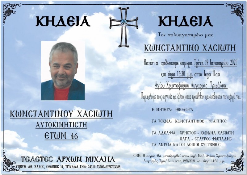 Η είδηση για τον θάνατο του 46χρονου Τρικαλινού προκαλεί θλίψη καθώς επρόκειτο για έναν ιδιαίτερα αγαπητό άνθρωπο στην Τοπική Κοινωνία.