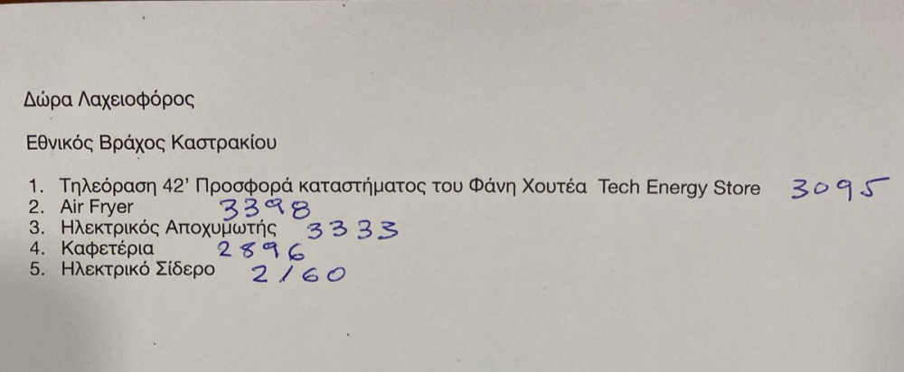 Το βράδυ της Δευτέρας έγινε η κλήρωση της λαχειοφόρου του Βράχου Καστρακίου.