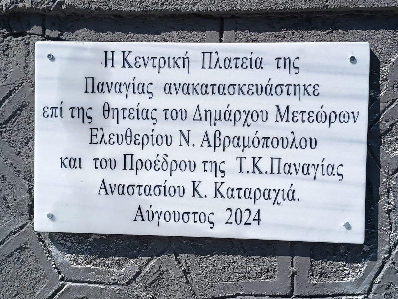 Εγκαινιάστηκε από τον Δήμαρχο Δήμου Μετεώρων Λ. Αβραμόπουλο η ανακατασκευασμένη Κεντρική Πλατεία της Παναγίας