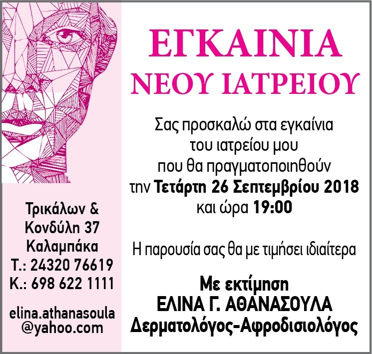 Σας προσκαλώ στα εγκαίνια του ιατρείου μου που θα πραγµατοποιηθούν την Τετάρτη 26 Σεπτεµβρίου 2018 και ώρα 19:00