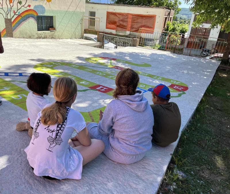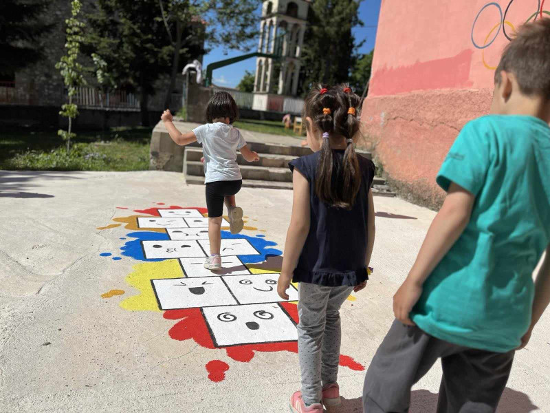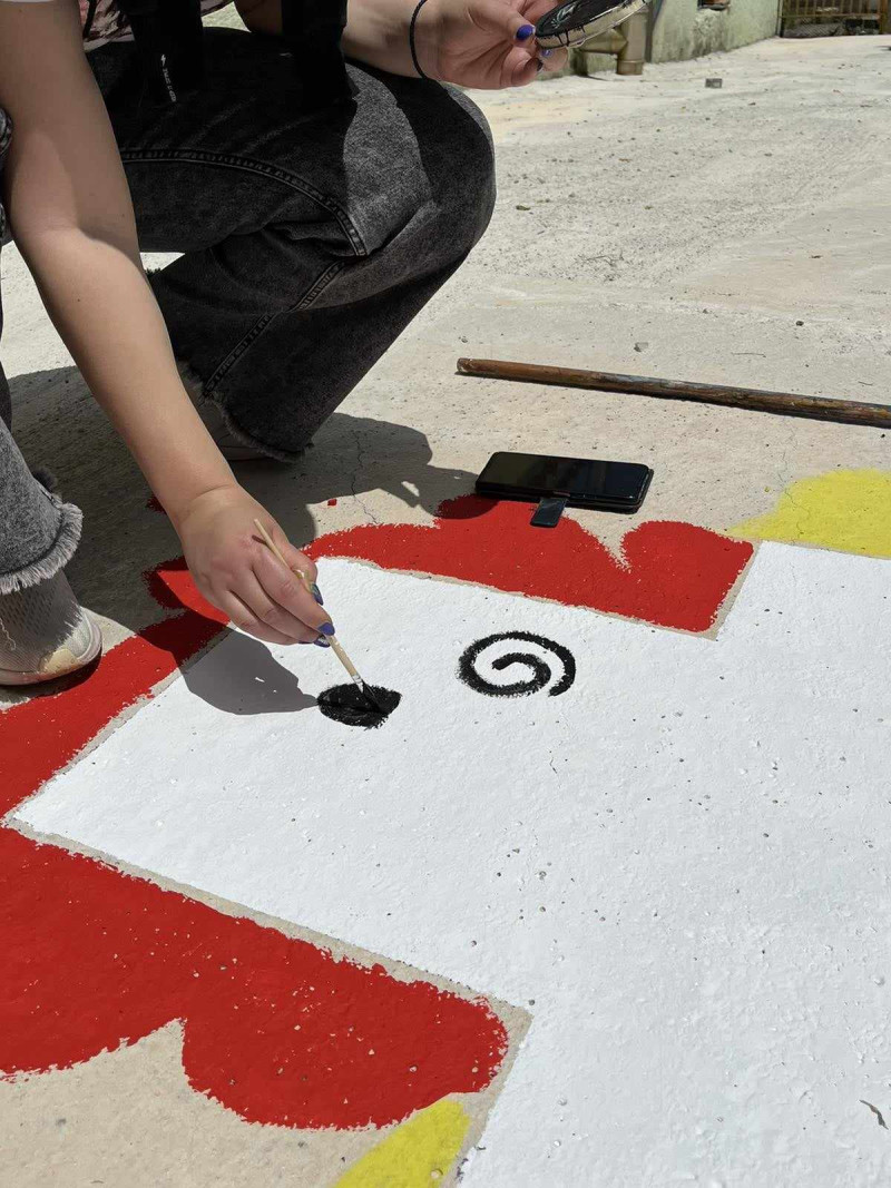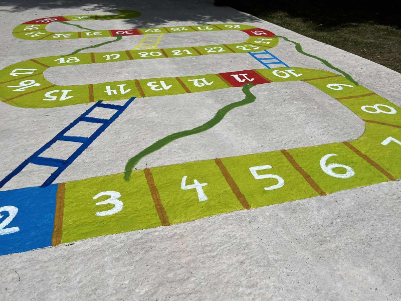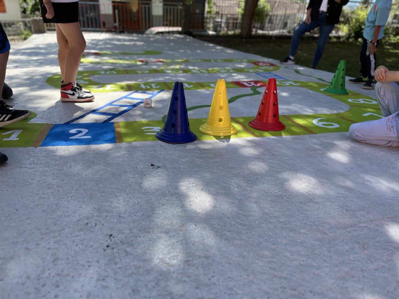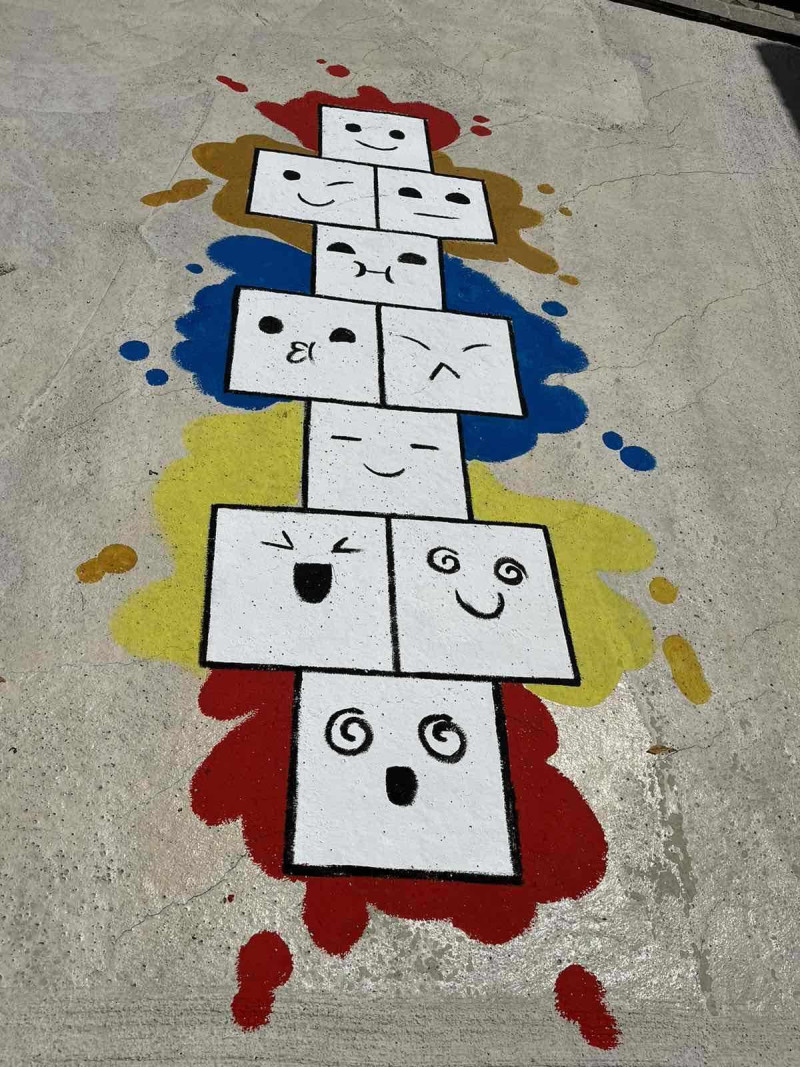 Τον εξωραϊσμό της αυλής του σχολείου ανέλαβε η αγιογράφος και εικαστικός Φανή Καραγγέλη, ανταποκρινόμενη στο κάλεσμα, σχεδιάζοντας και ζωγραφίζοντας επιδαπέδια παιχνίδια για τους μικρούς μαθητές – και όχι μόνο!