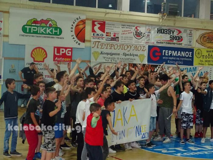 Σε πανηγυρισμούς προχώρησαν φίλαθλοι και παίκτες του Α.Ο. Καλαμπάκας μετά τη μεγάλη νικη επί του Ολιμπιακού Βόλου στο κλειστό της Καλαμπάκας.