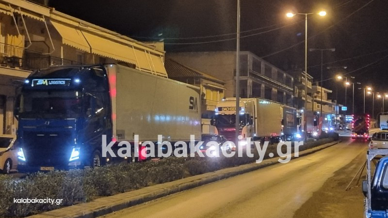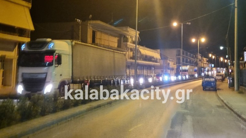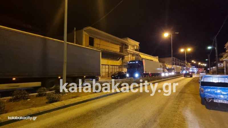 Εκατοντάδες είναι τα φορτηγά που πέρασαν τη Δευτέρα από την Καλαμπάκα σχηματίζοντας ουρές πολλών μέτρων στα φανάρια της οδού Πίνδου.