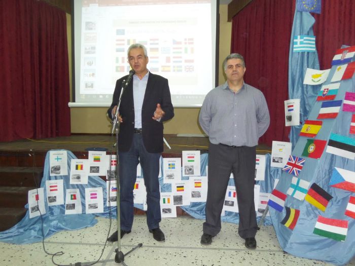 Ο Σύμβουλος ανέλυσε επίσης τον σκοπό της εκδήλωσης και χαιρέτησε την πρωτοβουλία του σχολείου για την πραγματοποίηση της εκδήλωσης εξηγώντας τα οφέλη που προέρχονται από την συμμετοχή της χώρας μας στην Ενωμένη Ευρώπη που στηρίζεται στην συνεργασία των μελών-κρατών σε κοινά θέματα όπως η ειρήνη, η ασφάλεια, η δικαιοσύνη, η οικονομική και κοινωνική ευημερία, η δημοκρατία, η σταθερότητα και η αλληλεγγύη.
