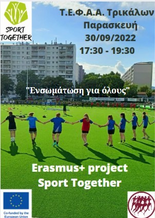 Το δρώμενο αυτό διοργανώνεται από το Ευρωπαϊκό Πρόγραμμα Erasmus+ “Sport Together” στο οποίο συμμετέχει και το Τ.Ε.Φ.Α.Α. Τρικάλων.