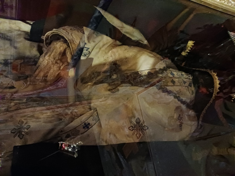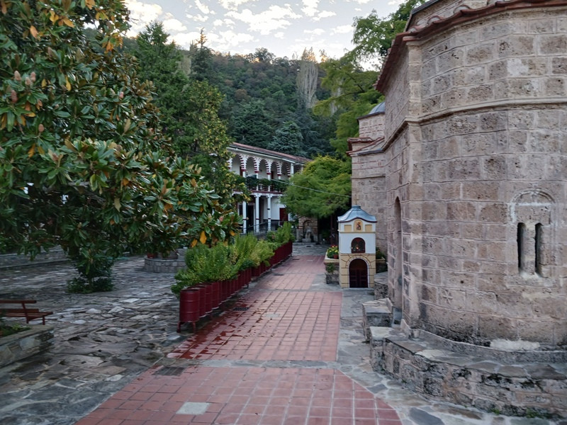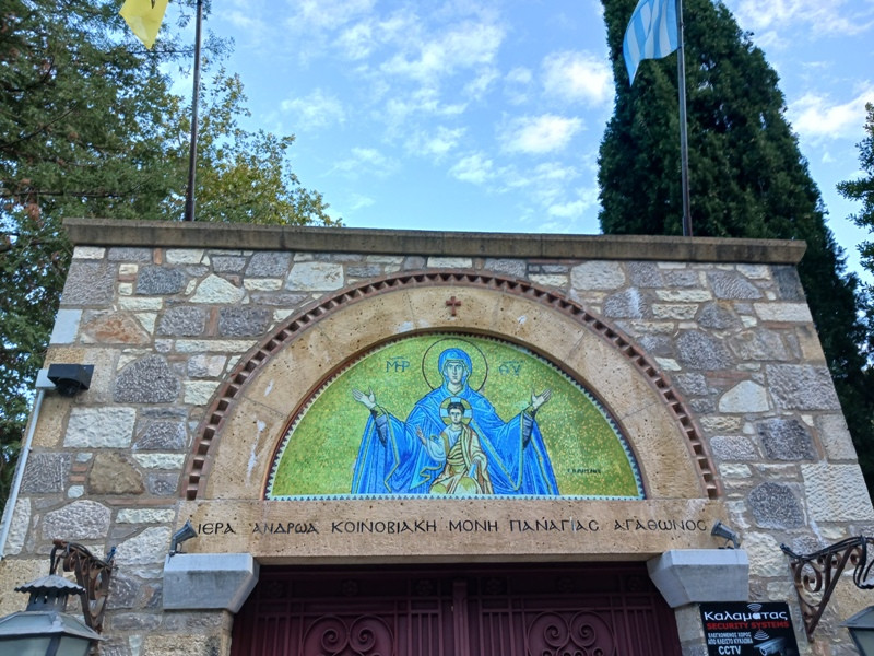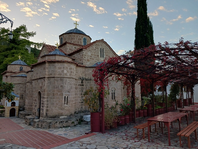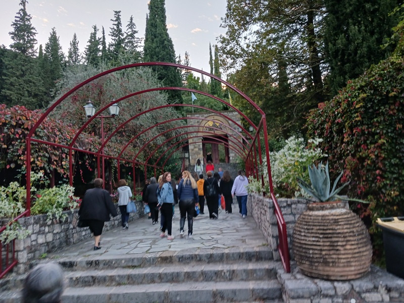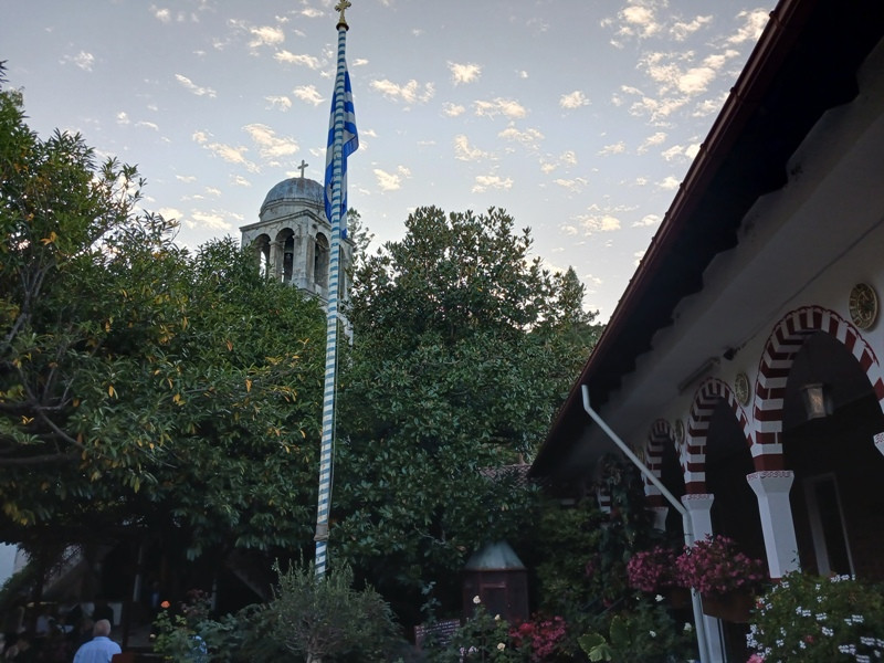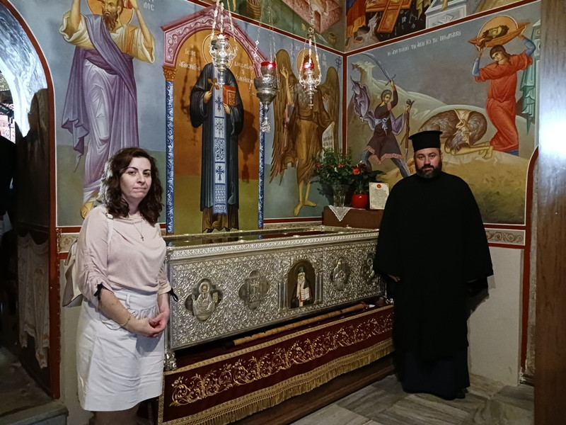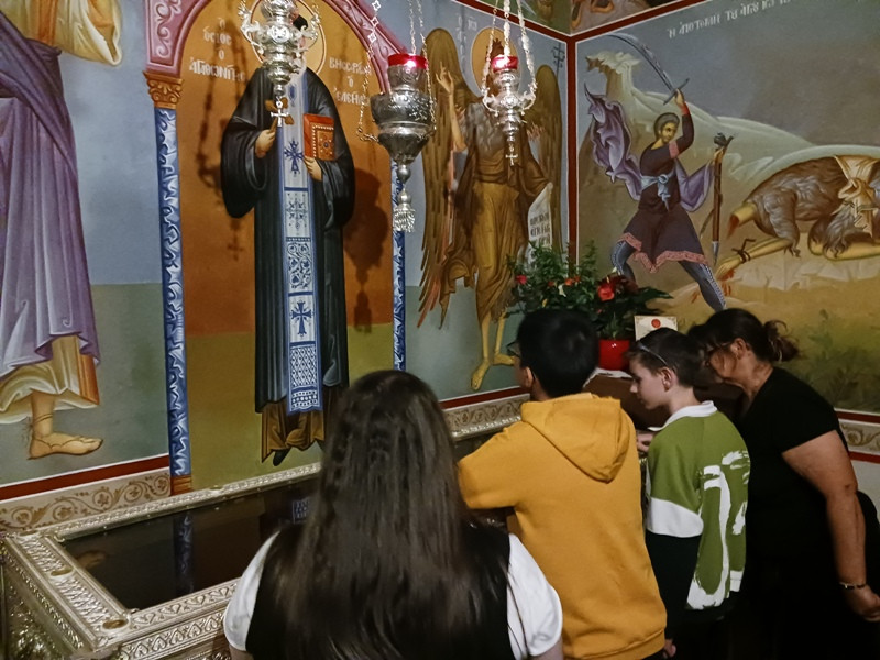Το μεσημέρι ξεκινήσαμε από την Διάβα με κατεύθυνση το μοναστήρι στο οποίο φυλάσσεται το ιερό σκήνωμα του αγίου Βησσαρίωνος του Αγαθωνίτου. Ο άγιος Βησσαρίων, ένας ακόμη άγιος των ημερών μας, εκοιμήθη το 1991. Υπήρξε απλός μοναχός και διακρινόταν για την ελεημοσύνη. Είχε βοηθήσει πολλούς φτωχούς, εξομολογούσε πολύ κόσμο και ο κόσμος αυτός πλησίασε την εκκλησία και τον άγιο. Μετά την κοίμηση του όταν έγινε η εκταφή του, μετά από 15 χρόνια το σκήνωμα του παρέμενε άφθαρτο. Στις 14 Ιουνίου 2022 η Αγία και Ιερά Σύνοδος του Οικουμενικού Πατριαρχείου τον ανέγραψε στο Αγιολόγιο της Ορθοδόξου Εκκλησίας.