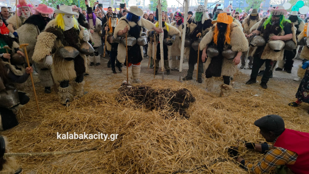 Οι κουδουνοφόροι, ντυμένοι με προβιές ζώων και ζωσμένοι με μεγάλα, βαριά κουδούνια στη μέση, διέσχισαν τους δρόμους του χωριού προκαλώντας εκκωφαντικό θόρυβο, όπως επιτάσσει το έθιμο με ιδιαίτερα εντυπωσιακή παρουσία!