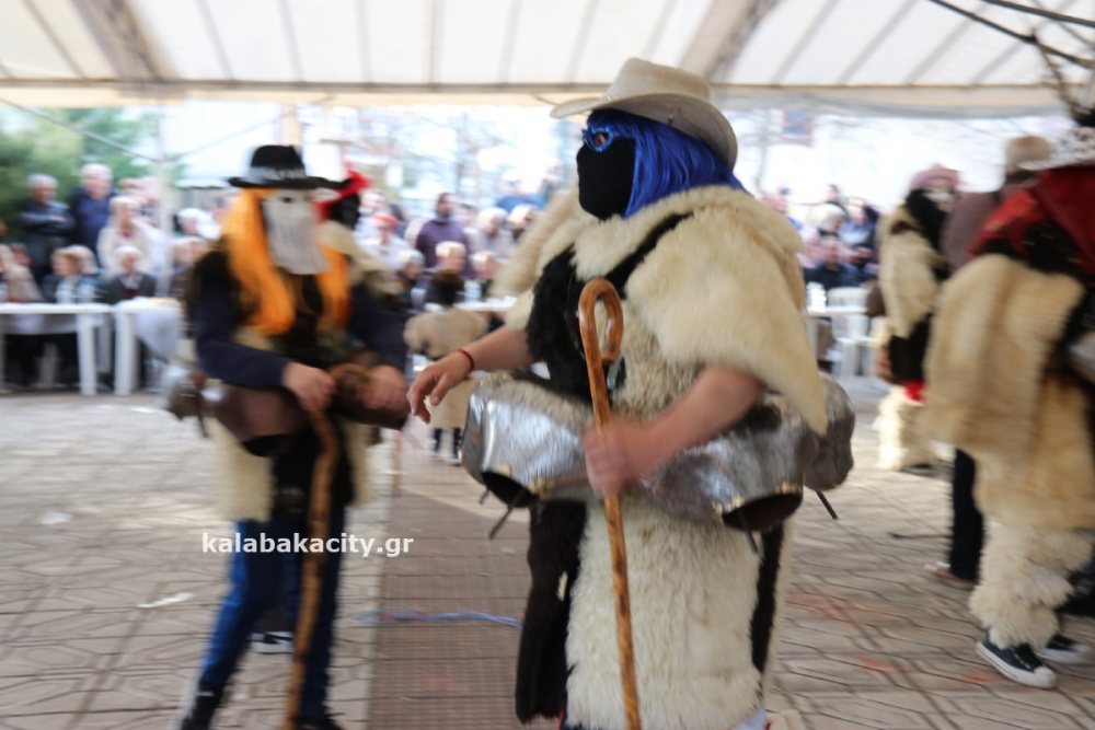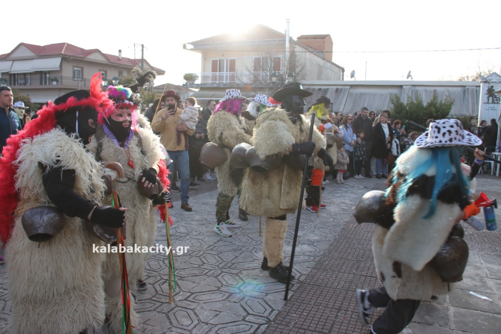 Οι κουδουνοφόροι, ντυμένοι με προβιές ζώων και ζωσμένοι με μεγάλα, βαριά κουδούνια στη μέση, διέσχισαν τους δρόμους του χωριού προκαλώντας εκκωφαντικό θόρυβο, όπως επιτάσσει το έθιμο με ιδιαίτερα εντυπωσιακή παρουσία!