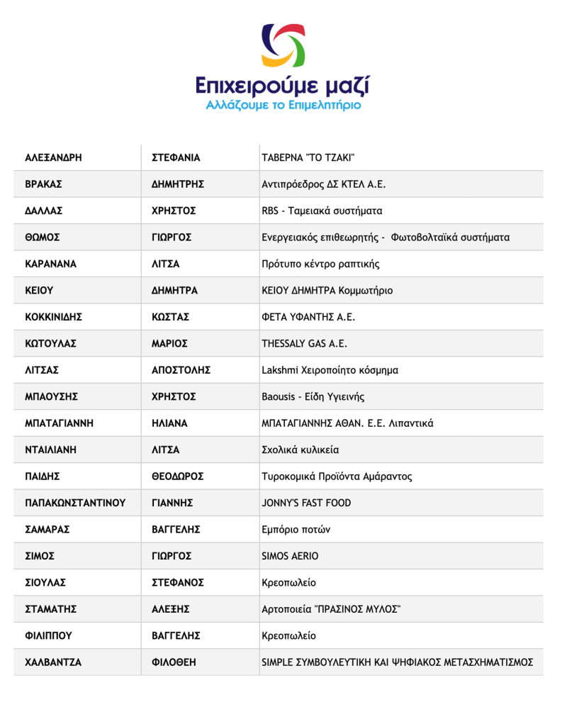 Εκλογές Επιμελητήριο: Ανακοίνωση νέων ονομάτων του συνδυασμού “Επιχειρούμε Μαζί, Αλλάζουμε το Επιμελητήριο”