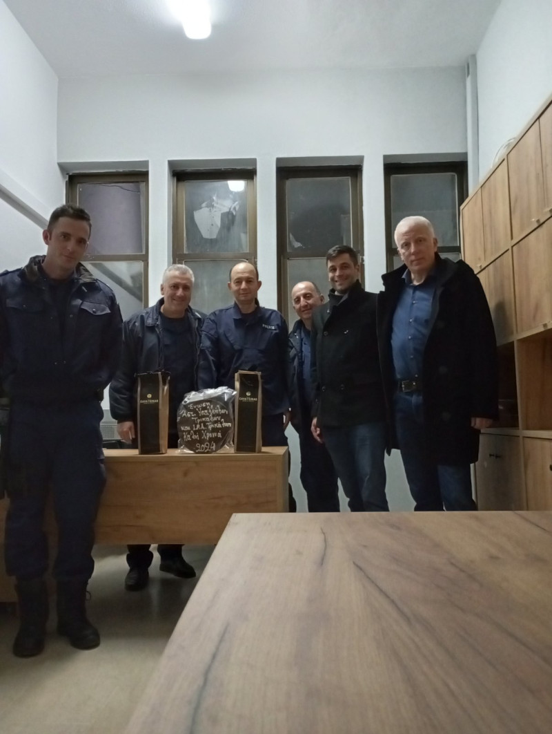 Με την έναρξη της βραδινής βάρδιας αντιπροσωπείες μελών επισκέφτηκαν τα Αστυνομικά Τμήματα Μετεώρων ,Πύλης και Φαρκαδόνας και εν συνεχεία όλοι οι βραδινοί σταθμοί παρουσία του Αστυνομικού Διευθυντή της Δ.Α. Τρικάλων συγκεντρώθηκαν στην έδρα της Διεύθυνσης και έκοψαν την πρωτοχρονιάτικη βασιλόπιτα, μοιράζοντας αναμνηστικά δώρα και ανταλλάσσοντας τις καθιερωμένες ευχές.