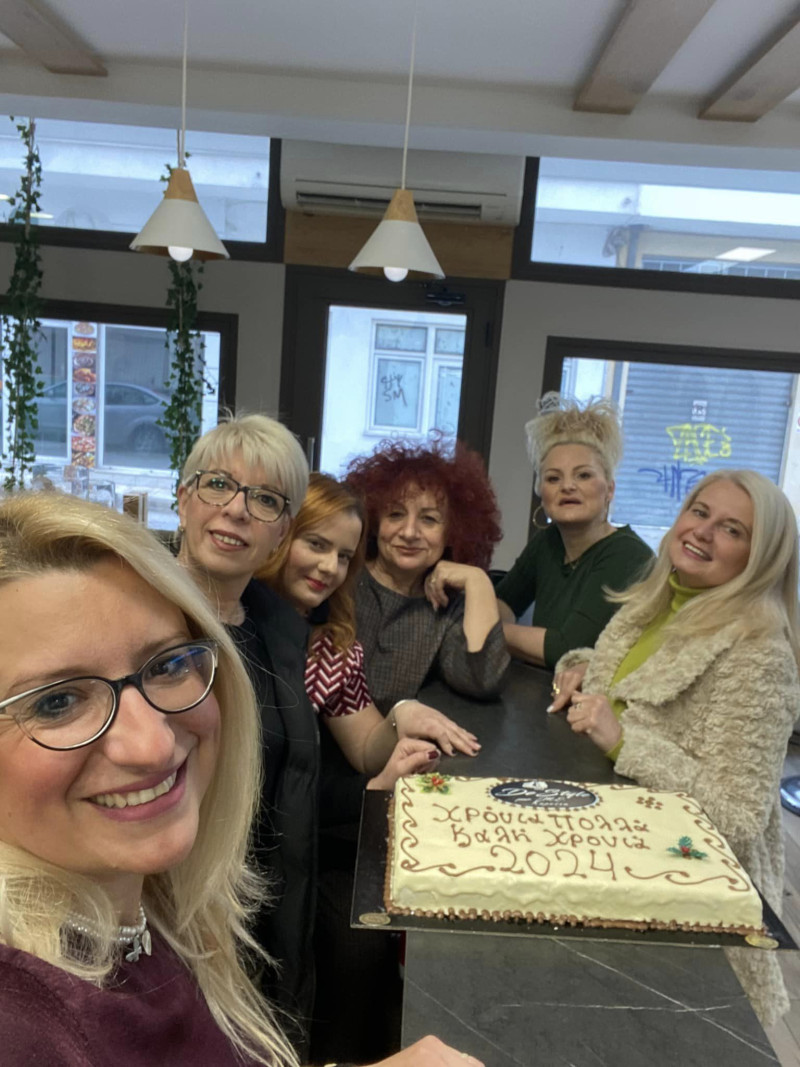 Οι κες Μαρία και Ελένη Καρούτα με το προσωπικό του Κομμωτηρίου έκοψαν την καθιερωμένη βασιλόπιτα με την τυχερή να κερδίζει τα χτενίσματα της για ένα μήνα!!!