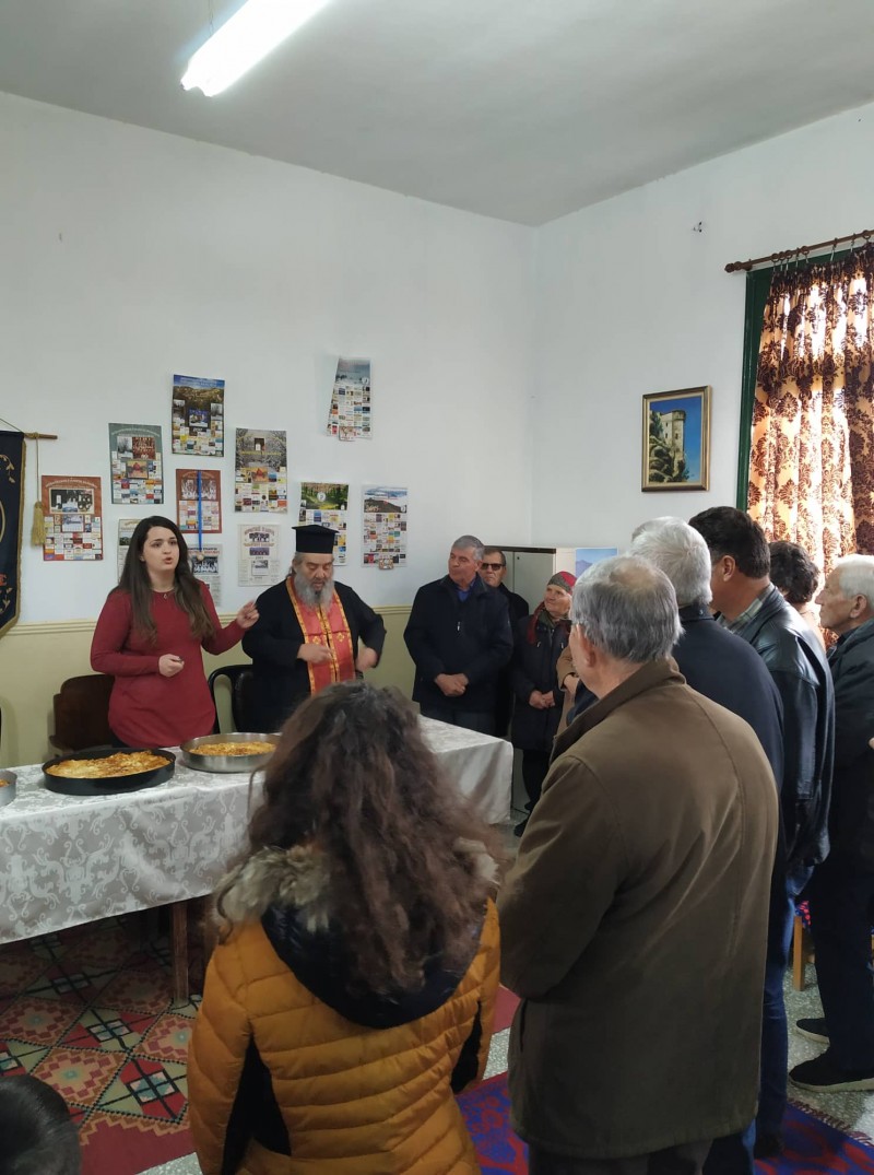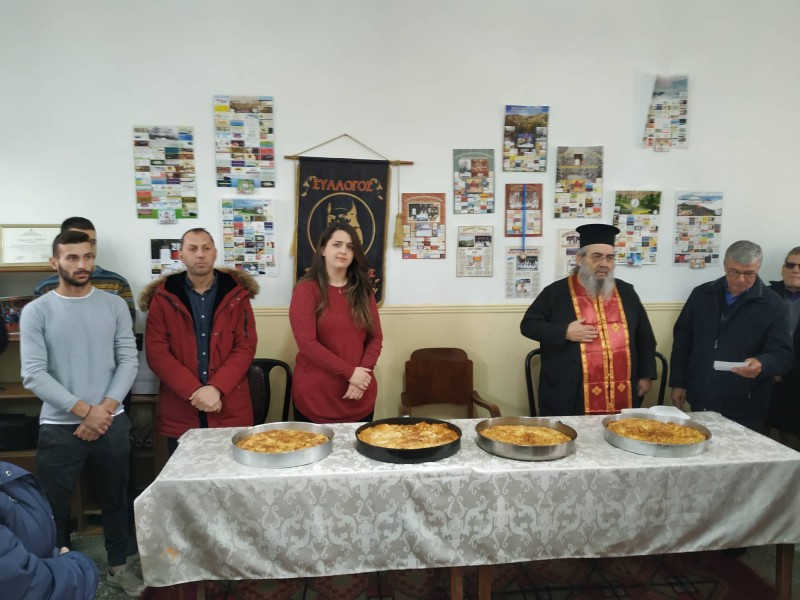 Τα μέλη του Πολιτιστικού Συλλόγου συγκεντρώθηκαν στην αίθουσα του Δημοτικού Σχολείου, όπου στεγάζεται ο σύλλογος, και έκοψαν την πρωτοχρονιάτικη πίτα ξεκινώντας με την ευλογία του π. Ντιναπόγια.