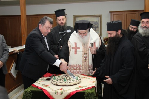 Η κοπή της πίτας έγινε μετά το πέρας της θείας λειτουργίας από τον Σεβασμιότατο Μητροπολίτη Σταγών και Μετεώρων κ. Σεραφείμ και τον Δήμαρχο Καλαμπάκας κ. Δημήτρη Σακελλαρίου. Ο Σεβασμιότατος έδωσε τις ευχές του σε όλους τους παρευρισκόμενους και στην δημοτική αρχή να συνεχίσει το δύσκολο έργο της. Ευχές προς όλους έστειλε και ο Δήμαρχος Καλαμπάκας κ. Σακελλαρίου, ο αρχηγός της Αντιπολίτευσης κ. Βύρωνας Μπουτίνας και ο περιφεριακός σύμβουλος κ. Μπάρδας.