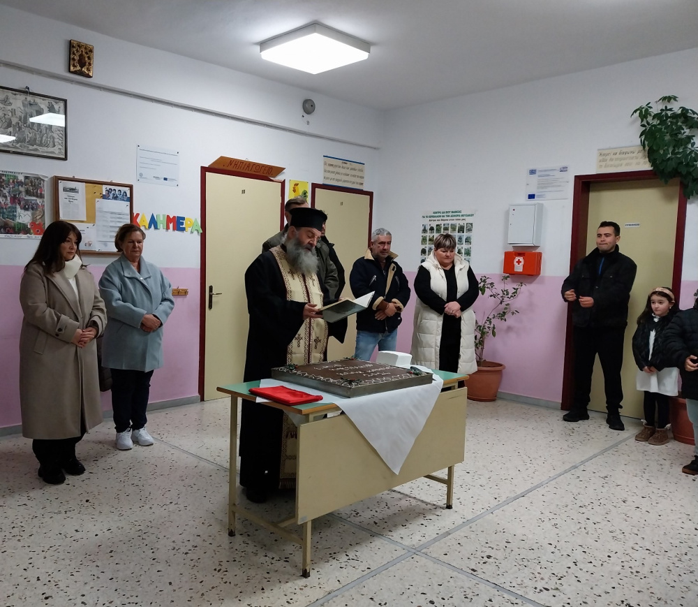 Την πίτα ευλόγησε και έκοψε ο Εφημέριος του χωριού μας, π. Ιωάννης Παπαϊωάννου, με τον Πρόεδρο του Ε.Μ.Ο.Κ. , Νικόλαο Παπούλια, και τον Πρόεδρο της Κοινότητας, Ελευθέριο Φλέτσιο.