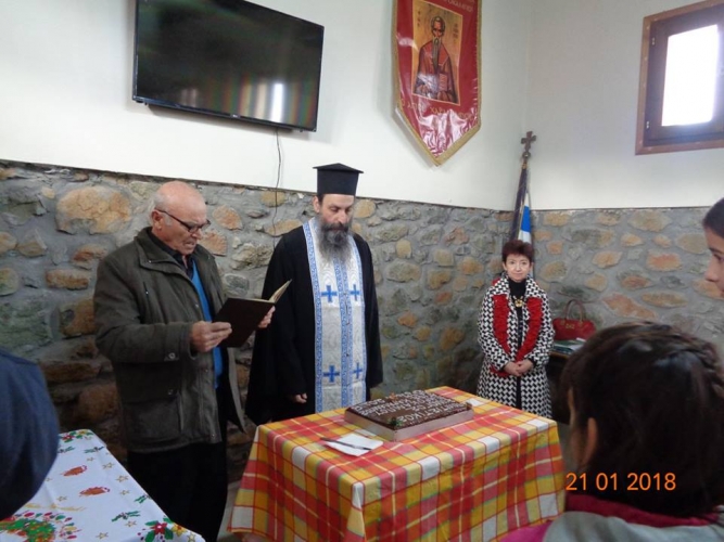Την πίτα ευλόγησε και έκοψε ο εφημέριος του χωριού π. Αχίλλειος Καραμίντζιος.