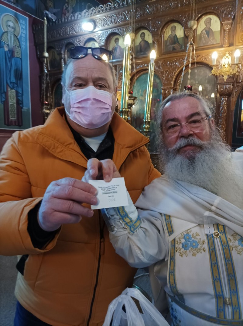Η κοπή της Βασιλόπιτας έγινε μετά την Θεία Λειτουργία ενώ έγινε και η κλήρωση για μια δωροεπιταγή των 50 ευρώ.
