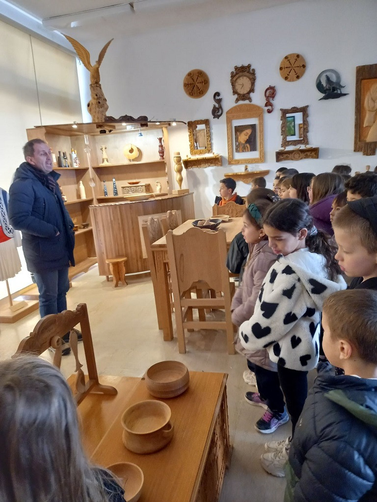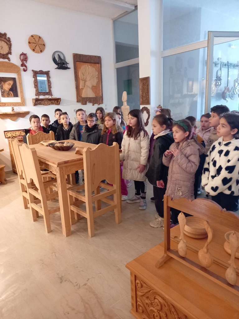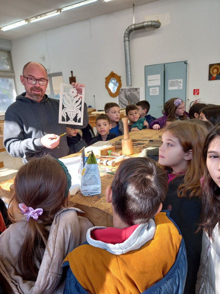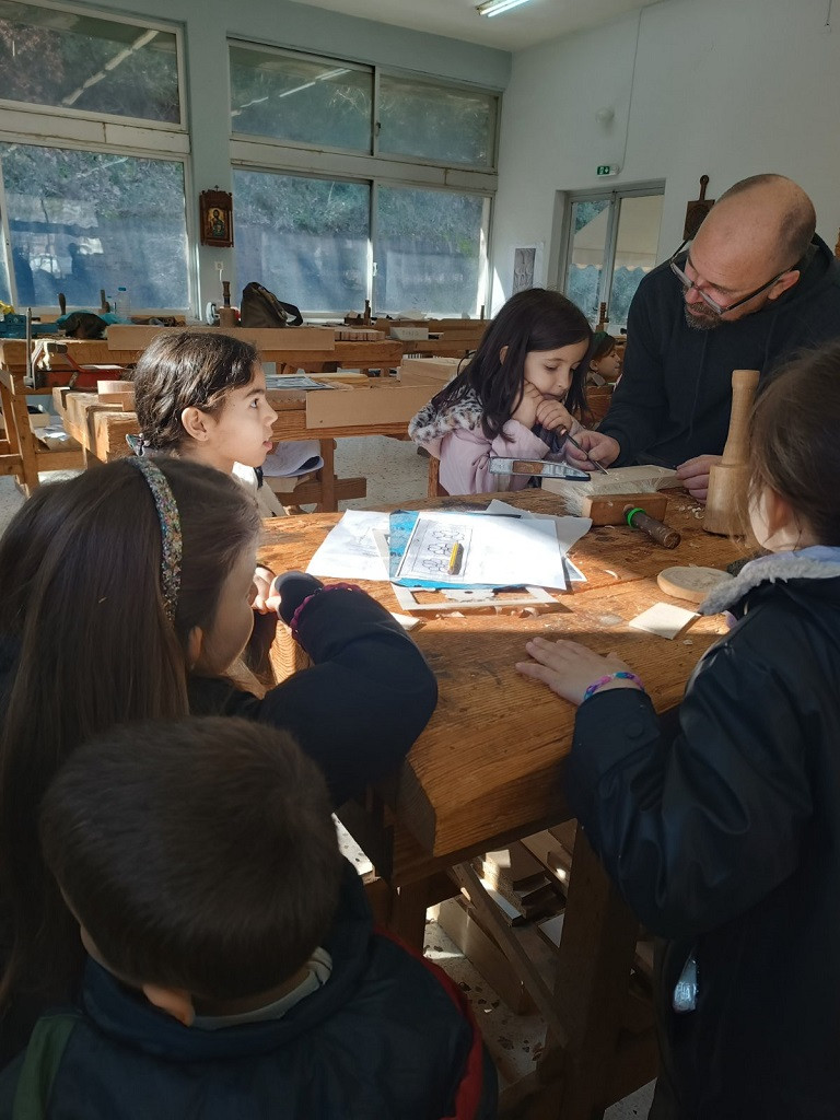 Ξεναγήθηκαν στους χώρους της σχολής και θαύμασαν τα υπέροχα ξυλόγλυπτα της έκθεσης. Έμαθαν πόσα διαφορετικά είδη αντικειμένων μπορούν να κατασκευαστούν από τους καλλιτέχνες που επεξεργάζονται το ξύλο: έπιπλα, κάδρα, αγαλματίδια, διακοσμητικά, εικόνες, εκκλησιαστικά είδη, ζώα και ό,τι άλλο μπορεί να φανταστεί κανείς.
