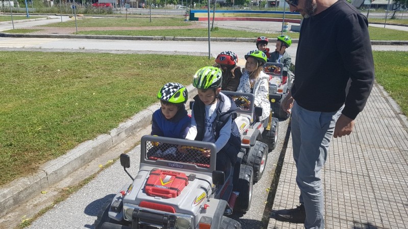 Στο τέλος είχαν την ευκαιρία να οδηγήσουν τα ηλεκτρικά αυτοκίνητα που υπάρχουν στο Πάρκο για πρακτική εξάσκηση των μαθητών, σε μια συγκεκριμένη διαδρομή, με τα βασικά σήματα της τροχαίας, ώστε να εξοικειωθούν καλύτερα με τον Κώδικα Οδικής Κυκλοφορίας.