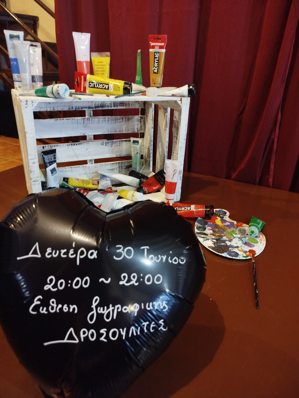 Με μεγάλη χαρά σας προσκαλούμε στην έκθεση ζωγραφικής του προχωρημένου τμήματος του καλλιτεχνικού εργαστηρίου Δροσουλίτες.