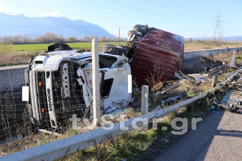 Η νταλίκα, έπεσε αρχικά πάνω στις μπάρες και στη συνέχεια βγήκε εκτός δρόμου με αποτέλεσμα να εκτραπεί και να υποστεί σοβαρές υλικές ζημιές χωρίς ωστόσο να τραυματιστεί ο οδηγός της.