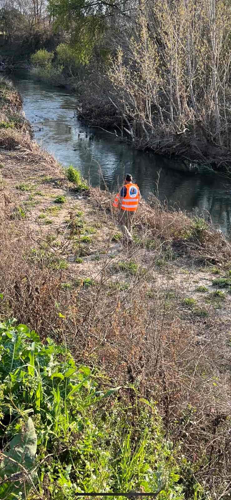 Μέλη της ομάδας, με άνδρες της ΟΠΚΕ και το σκύλο της ομάδας, σαρώνουν από εδάφους την κοίτη του ποταμού, ενώ από αέρος γίνονται έρευνες με το drone, που πρόσφατα απέκτησε το τμήμα Π/Π της Π.Ε Τρικάλων.