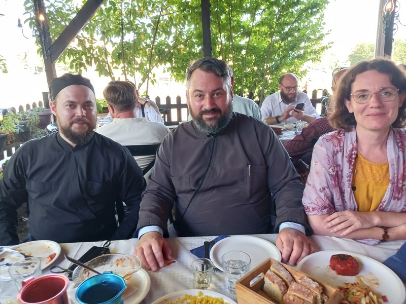 Ουκρανοί κληρικοί και λαϊκοί γευμάτισαν στην Καλαμπάκα και στην συνέχεια αναχώρησαν με κατεύθυνση την πόλη του Βόλου. Ανάμεσα τους και η Λυδία από την Ουκρανία, την οποία γνωρίσαμε πριν από δύο χρόνια, όταν με δύο φίλες της εκκλησιάστηκε στην ενορία μας και στη συνέχεια συζητήσαμε για ποικίλα θέματα πίνοντας καφέ σε ένα άκρως χειμωνιάτικο τοπίο, στην Διάβα. Ενδιαφέρουσα η κουβέντα κατά τη διάρκεια του γεύματος με τον ιερομόναχο π. Ιώβ από το Λβιβ της Ουκρανίας και τη σύζυγο του κ. Παντελή Καλαϊτζίδη, καθηγήτρια θεολόγο. Λίγο αργότερα στην παρέα μας προστέθηκε και ο αγαπητός μας κ. Γιάννης Πεντεδήμος, Επίτροπος στον Μητροπολιτικό Ναό του Αγίου Βησσαρίωνος Καλαμπάκας.
