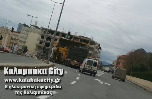 Το τεράστιο φορτηγό, αν και φορτωμένο σε ένα άλλο, με δυσκολία πέρασε από την οδό Πίνδου, με την συνοδεία της Αστυνομίας, καθώς τα παρκαρισμένα αυτοκίνητα δυσκόλευαν το πέρασμά του.