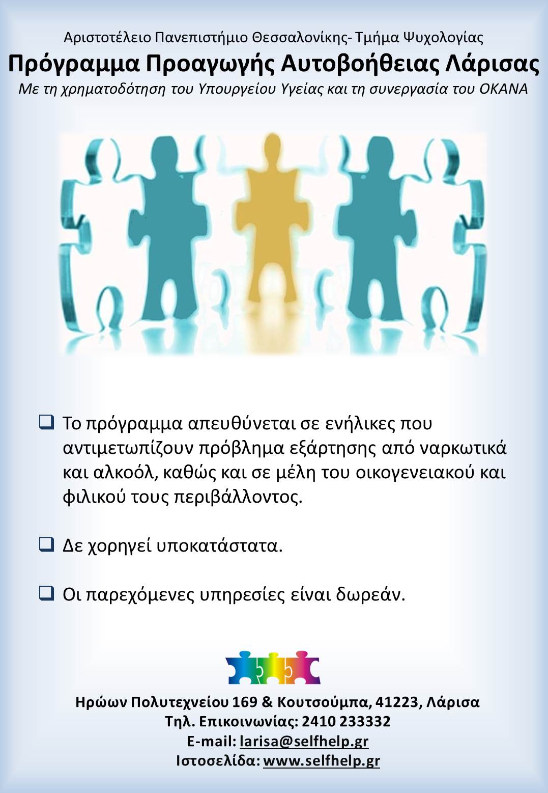 Το Πρόγραμμα Προαγωγής Αυτοβοήθειας Λάρισας είναι πρόγραμμα του τμήματος Ψυχολογίας του Αριστοτελείου Πανεπιστημίου Θεσσαλονίκης (Α.Π.Θ.).