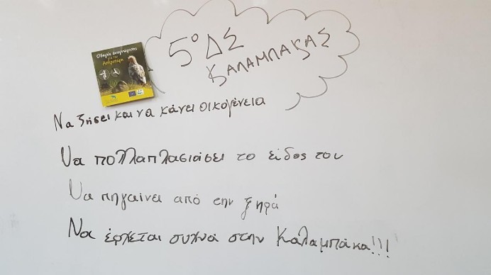 Στόχος της ενημέρωσης ήταν η γνώση και η ευαισθητοποίηση των παιδιών για τον Ασπροπάρη , ο οποίος αποτελεί πια σπάνιο και απειλούμενο είδος.