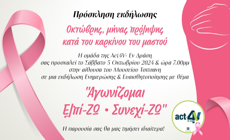 “Αγωνίζομαι  Ελπί-ΖΩ  Συνεχί-ΖΩ “ – Ενημερωτική εκδήλωση από την ACT4V