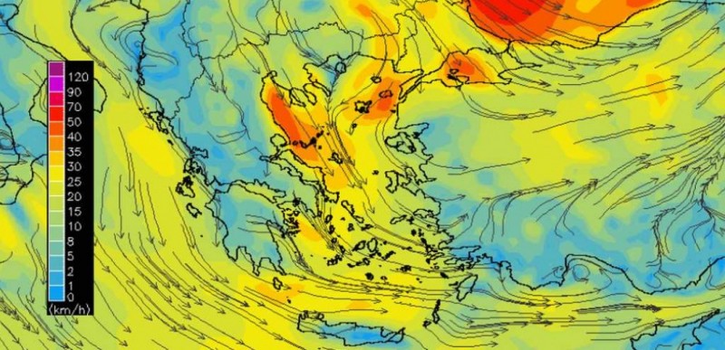 Άνεμοι, Βοριάδες, στα πελάγη 5-7 Μποφόρ. Θερμοκρασίες, στη βόρεια Ελλάδα από 3 έως 17, στη δυτική και νότια από 7 έως 21 και στις νησιωτικές περιοχές από 12 έως 22 βαθμούς.