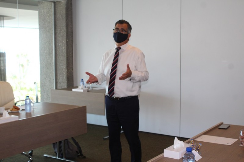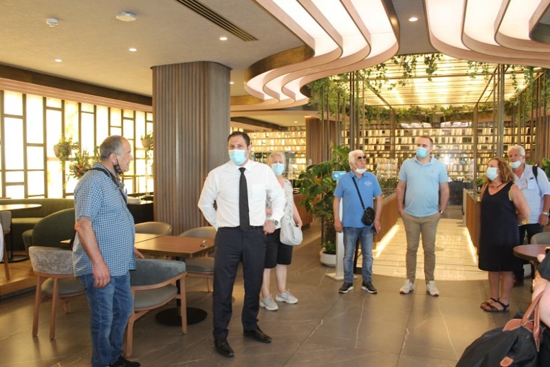 Ο υποδιευθυντής του “AMATHUS BEACH HOTEL” ανέλαβε την ξενάγηση των μελών της Ενώσεως στους χώρους του ξενοδοχείου,  ενώ ο Διευθυντής κ.   Αντρέας Γεωργίου μίλησε για την ιστορία του ξενοδοχείου, τον τρόπο λειτουργιάς αλλά και την φιλοσοφία γύρω από θέματα που έχουν να κάνουν ακόμη και με τη διαχείριση του προσωπικού.