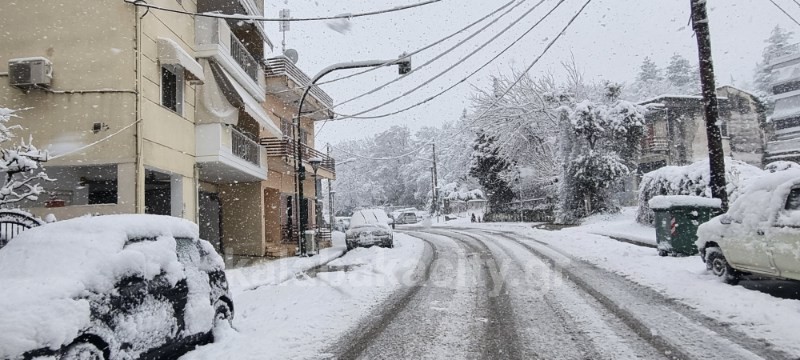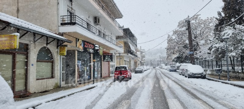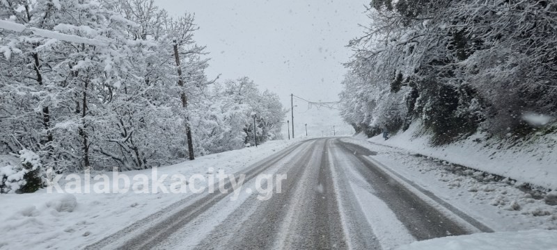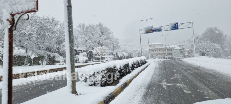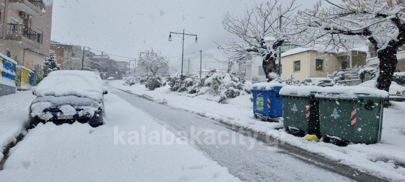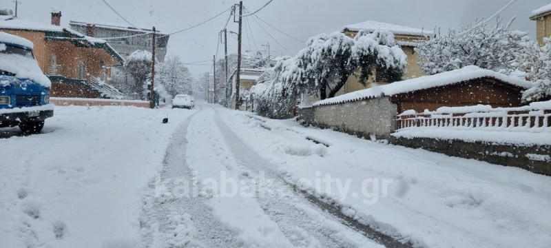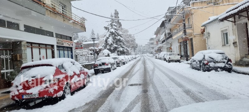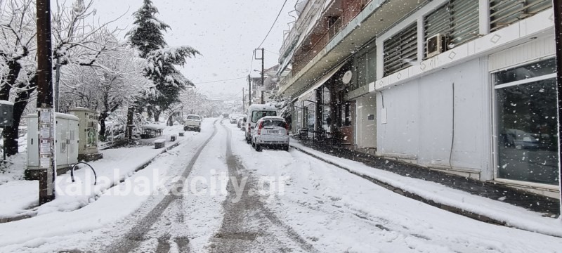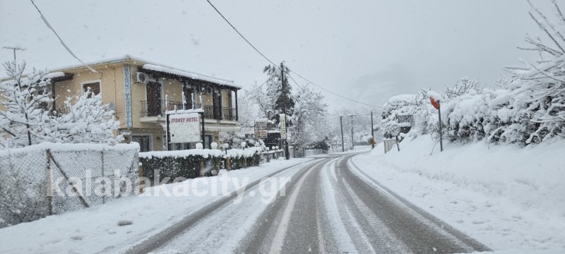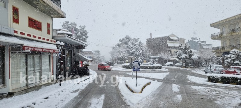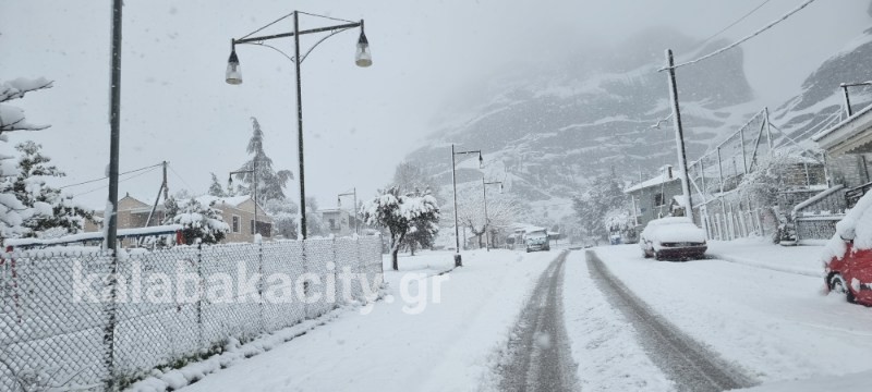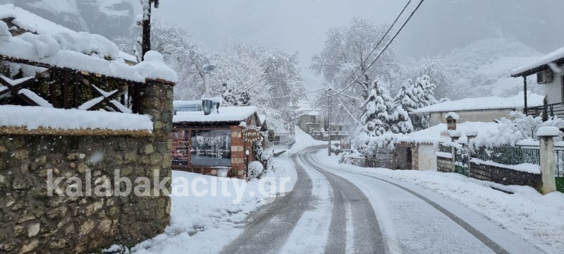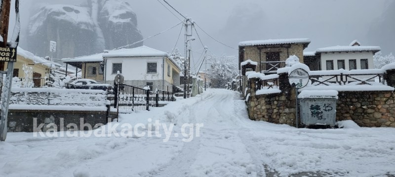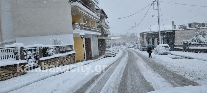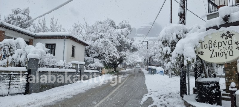 Συνεχιζεται με ενταση η χιονόπτωση στην Καλαμπάκα και γενικότερα στον Δήμο Μετεώρων.