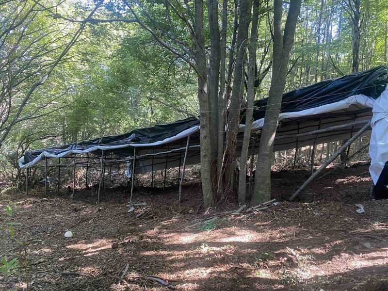 Παραπλεύρως των καλλιεργήσιμων επιπέδων εντοπίστηκαν δύο αυτοσχέδιες ξύλινες κατασκευές με εννέα αυτοσχέδια κρεβάτια, πλήθος ενδυμάτων και κλινοσκεπασμάτων. Επίσης ανευρέθηκαν δύο αυτοσχέδιοι ειδικά διαμορφωμένοι χώροι με πλήθος μαγειρικών σκευών, κονσερβών, λοιπών τροφίμων αλλά και με φιάλες και εστίες υγραερίου.