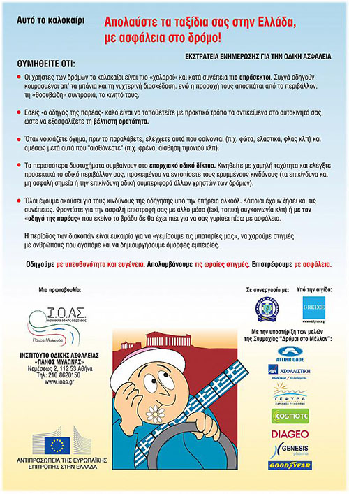 Έντυπο σχετικά με συμβουλές οδικής ασφάλειας έχει δημιουργηθεί από το Ινστιτούτο Οδικής Ασφάλειας ( Ι.Ο.Α.Σ. ) «Πάνος Μυλωνάς»,