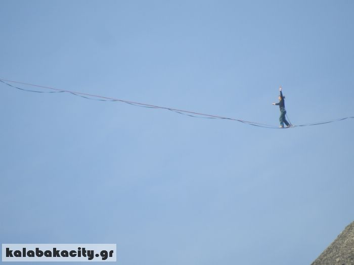 Στους βράχους των Μετεώρων ήταν τα βλέμματα πολλών στραμμένα σήμερα το μεσημέρι και ο λόγος από την σχοινοβασία – highline – επισκεπτών στη πόλη μας.