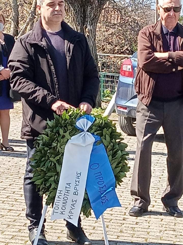 Την 25η Μαρτίου 1821 τίμησε ο πρόεδρος και οι κάτοικοι της Κρύας Βρύσης.