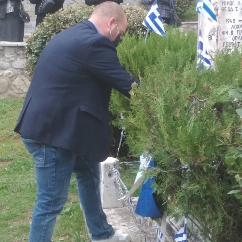Μετά την Θεία Λειτουργία έγινε η επιμνημόσυνη δέηση στο μνημείο στην πλατεία του χωριού παρουσία του Προέδρου κ. Γιώργου Γκόγκου, του Αντιπροέδρου κ. Χρήστου Τσουρβάκα και του αντιδημάρχου Οικονομικών του Δ. Μετεώρων κ. Τούλα και ακολούθησε η κατάθεση στεφάνω.