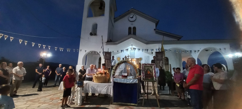 Στο Αμπελοχώρι Καλαμπάκας τελέστηκε την Τετάρτη 14 Αυγούστου το απόγευμα ο Μεγας Εσπερινός στον Ιερό Ναό Κοιμήσεως της Θεοτόκου.
