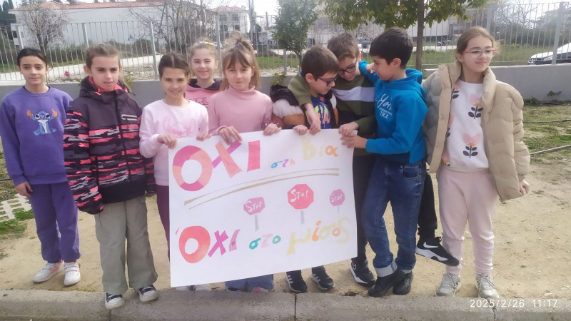 Οι μαθητές/τριες όλων των τάξεων με τον εκπαιδευτικό εικαστικών κ. Αλεξίου Γεώργιο ετοίμασαν συνθήματα κατά της οπαδικής βίας και τα έγραψαν σε μεγάλα χαρτόνια.