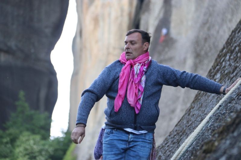 Η διαδικασία ξεκίνησε από νωρίς το πρωί με τους πιο έμπειρους αναρριχητές να ανεβαίνουν πρώτοι στον βράχο και ειδικότερα στο ερειπωμένο μοναστήρι του Αγίου Γεωργίου και στην συνέχεια να ρίχνουν τα σκοινιά με τα οποία ανεβαίνουν οι υπόλοιποι αναρριχητές για την διαδικασία του ανεβοκατεβάσματος των μαντηλίων.