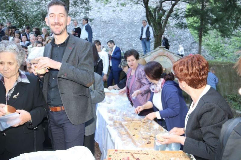 Παράλληλα με το ανεβοκατέβασμα των μαντηλιών τελείται η Θεία Λειτουργία στο μικρό εκκλησάκι του Αγίου Γεωργίου όπου οι πιστοί παίρνουν ένα κομμάτι από τα μαντήλια που έμειναν επάνω για ένα χρόνο και το χρησιμοποιούν ως φυλαχτό.