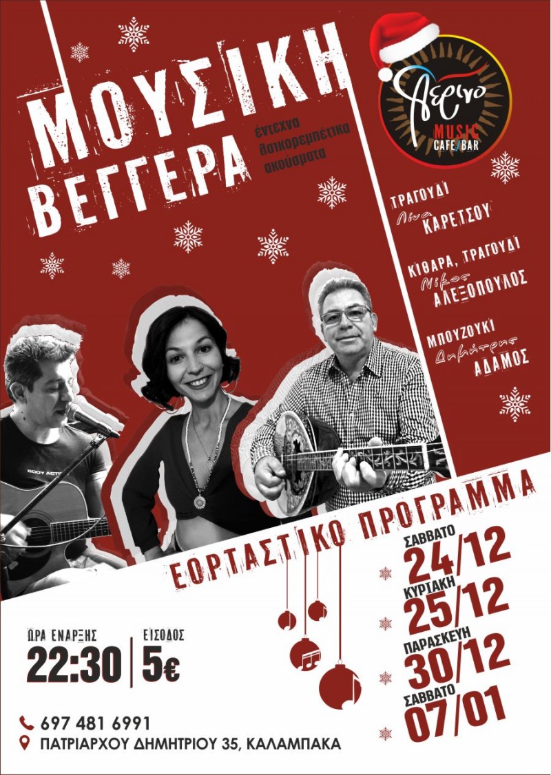 Παραμονή Χριστουγέννων στις 24/12 αλλά και στις 25/12 Χριστούγεννα γιορτάζουμε στο ΑΕΡΙΝΟ παρέα με την Μουσική Βεγγέρα!!!!