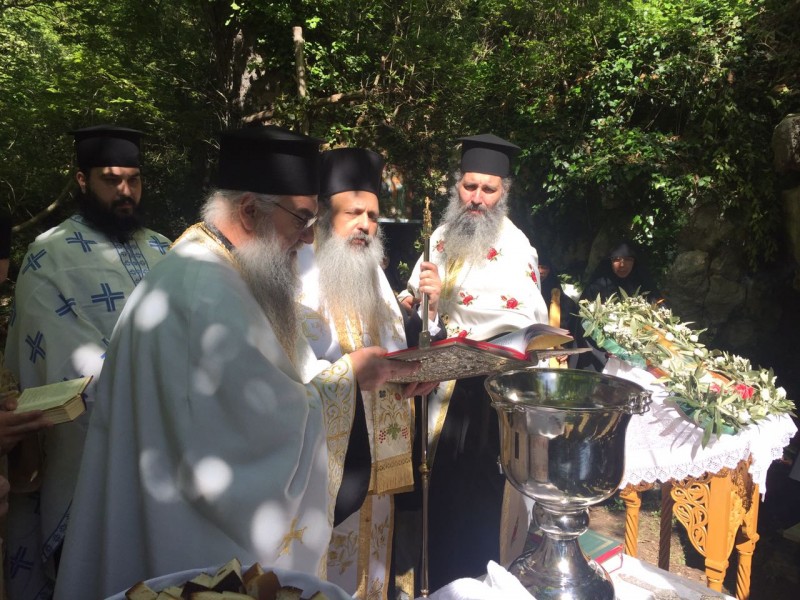 Πριν την απόλυση της Θείας Λειτουργίας ο σεπτός Ποιμενάρχης μας κ. Θεόκλητος μετέβη στο Αγιονέρι ( πηγή ) της Μονής όπου μετά από πολλά χρόνια τέλεσε τον αγιασμό και την αρτοκλασία .