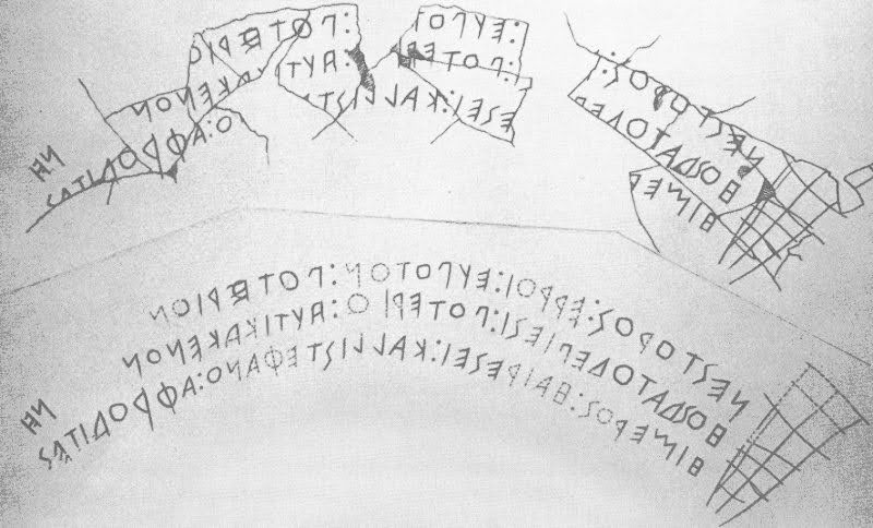 Το κείμενο της γραμμένης βουστροφηδόν επιγραφής από το κύπελλο του Νέστορος